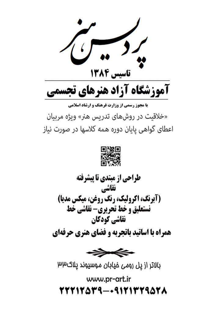 آموزشگاه پردیس هنر تهران خیابان شریعتی بالاتر از پل رومی خیابان موسیند پلاک 33 22212539